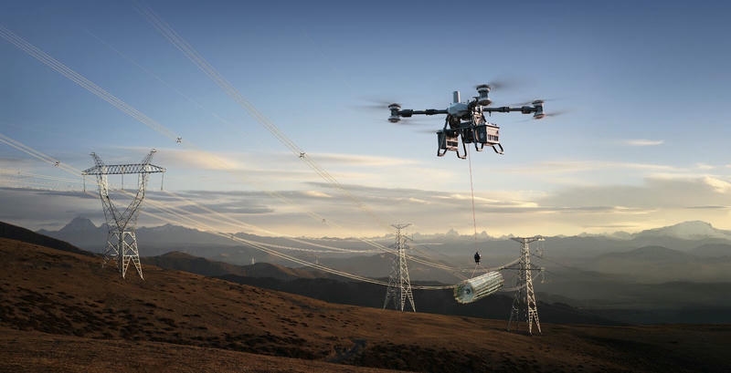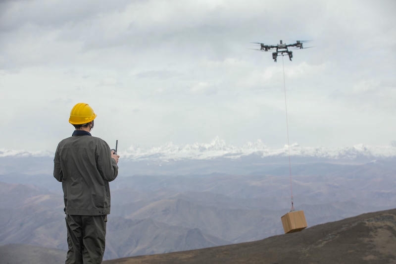 FC 100 thay thế hoàn toàn phương pháp thủ công này. Với tải trọng 40kg, máy bay có thể vận chuyển liên tục vật tư lên điểm tập kết chỉ trong vài phút, thay vì hàng giờ leo núi của công nhân. Điều này giúp đẩy nhanh tiến độ thi công và giảm thiểu tối đa tai nạn lao động.